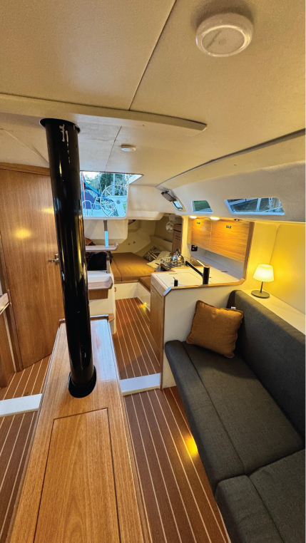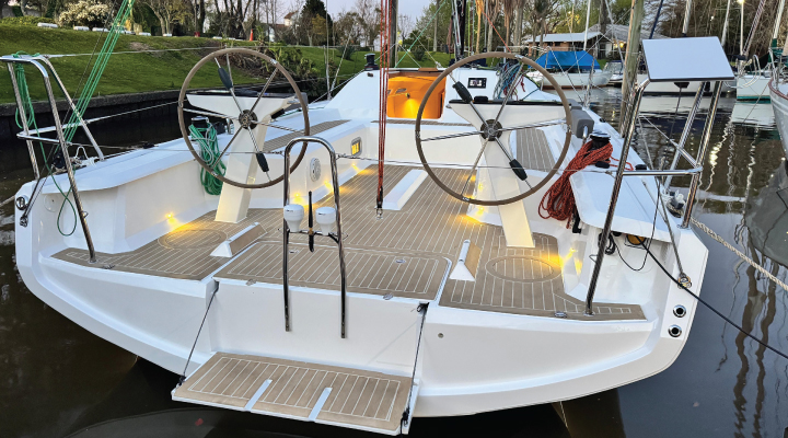 Cómodo: Cockpit de amplias y cómodas bancadas, respaldos acolchados, asientos de timonel para ambas ruedas, acceso a marina por una enorme popa. Amplio y versátil interior en excelente balance con la prestación exterior, manteniendo la privacidad tanto como los espacios comunes.