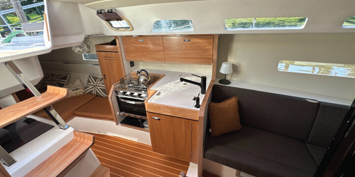 El nuevo modelo del astillero trasciende los límites del day sailer entregando confort y performance incomparables a barcos de su misma eslora. Su amplio espacio interior y exterior expande las fronteras de la navegación hasta donde lo desees.